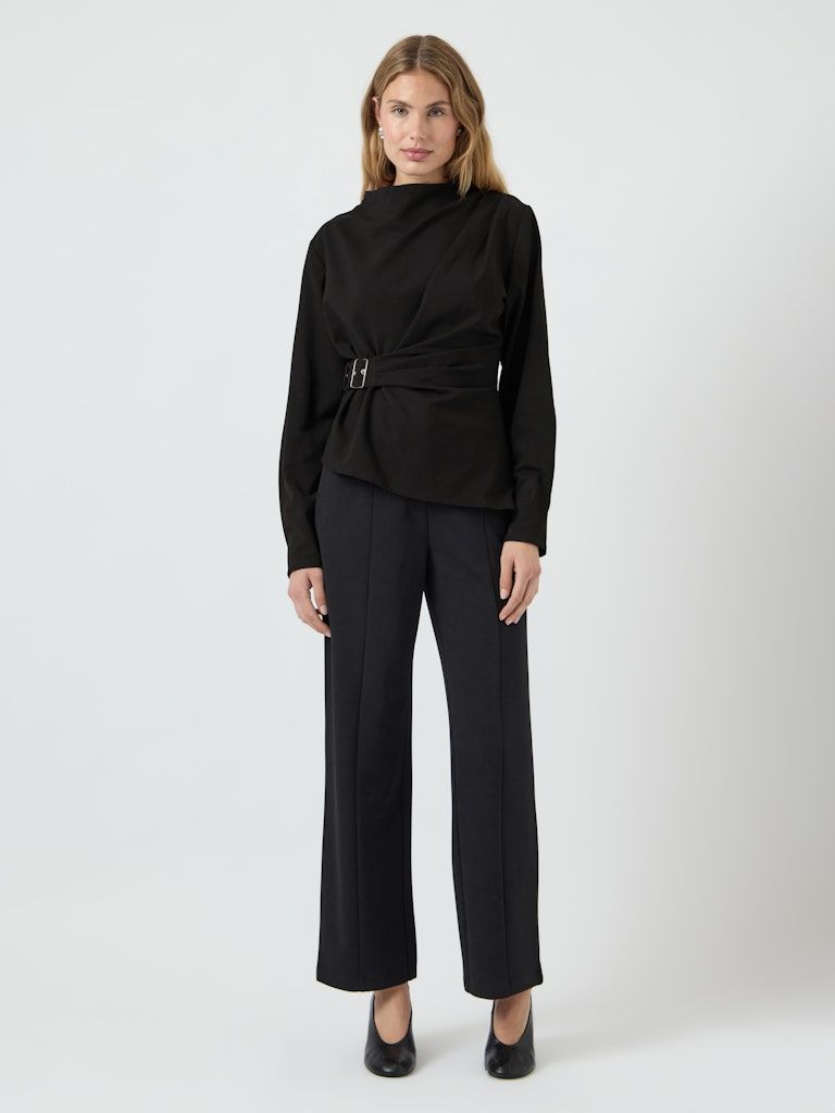 Dieses elegante Top überzeugt mit seinem zeitlosen Design und stilvollen Details. Der hoch geschlossene Ausschnitt verleiht ihm eine klassische Eleganz, die es zum perfekten Begleiter für besondere Anlässe oder das Büro macht. Die langen Ärmelsorgen für eine schicke Silhouette und bieten gleichzeitig angenehmen Tragekomfort.