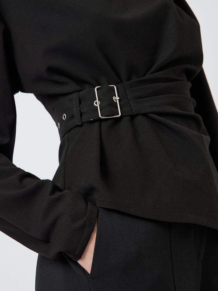 Ein besonderer Blickfang ist der Gürtel in der Taille mit einer schlichten Schnalle, der die Figur gekonnt betont und dem Top eine raffinierte Note verleiht. Der verdeckte Reißverschluss auf der Rückseite sorgt für eine nahtlose Optik und ein einfaches An- und Ausziehen. Die normale Passform bietet eine ausgewogene Balance zwischen figurbetont und bequem, sodass Sie sich rundum wohlfühlen.