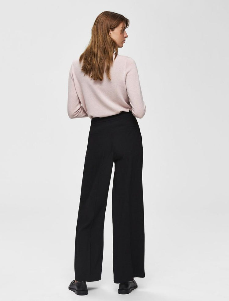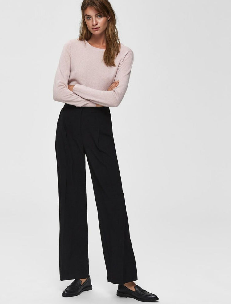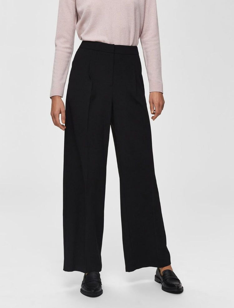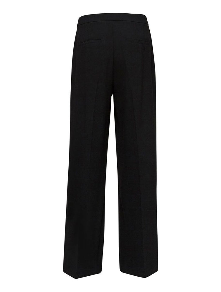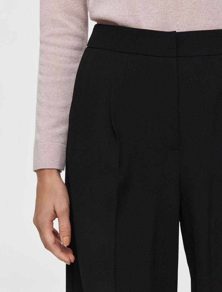 Hosen mit weitem Bein gehören zu den schmeichelhaftesten Silhouetten in deinem Kleiderschrank. Diese Hose mit Schlag hat einen mittelhohen Bund, betont deine Taille und lässt deine Beine optisch länger wirken. Die Hose punktet außerdem mit eleganten Tailoring-Details wie den Paspeltaschen am Gesäß, den Bügelfalten an der Beinmitte und den Bundfalten an der Vorderseite. Wie du sie trägst? Unser Tipp: Kombiniere sie im Büro mit einem gerippten Rollkragenpullover, einem einreihigen Blazer und spitzen Pumps. - Mid Waist - Reißverschluss mit Haken- und Ösenverschluss - Einschubtaschen an der Seite - Paspeltaschen am Gesäß - Bundfalten an der Vorderseite - Bügelfalten vorn und hinten an der Beinmitte - Vollfutter - Weite Beinform