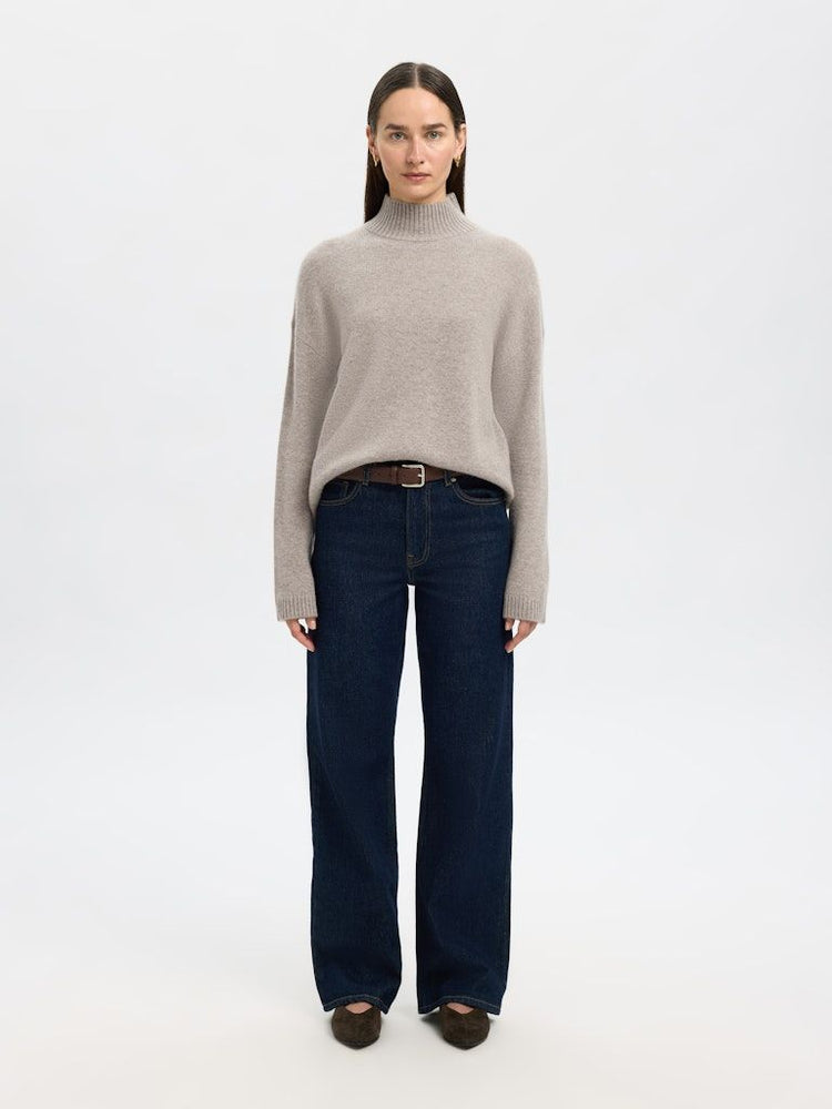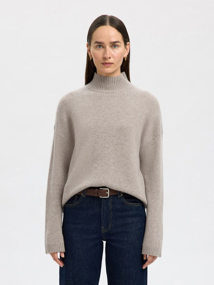 Dieser locker geschnittene Strickpullover vereint zeitloses Design mit edlen Materialien. Mit hohem Kragen, überschnittenen Schultern, langen Ärmeln und gerippten Säumen bietet er eine moderne Silhouette und maximalen Komfort.