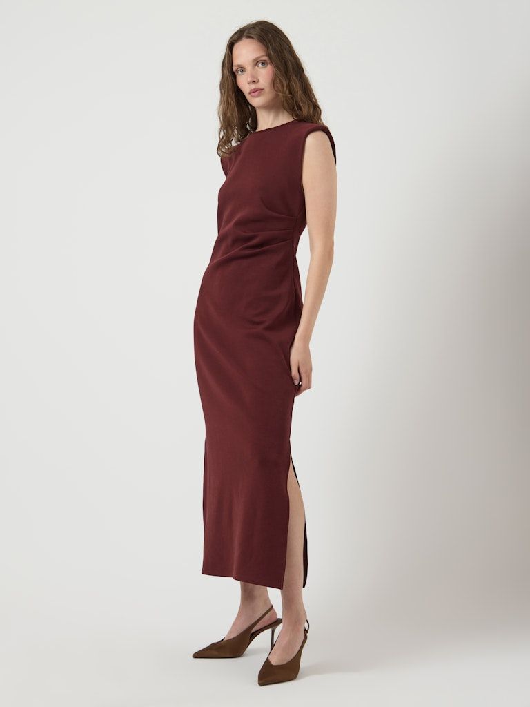 Dieses Kleid überzeugt mit einem schlichten, eleganten Design und vielseitiger Tragbarkeit. Der klassische Rundhalsausschnitt verleiht dem Look eine zeitlose Note, während das ärmellose Design für eine leichte, moderne Ausstrahlung sorgt.
