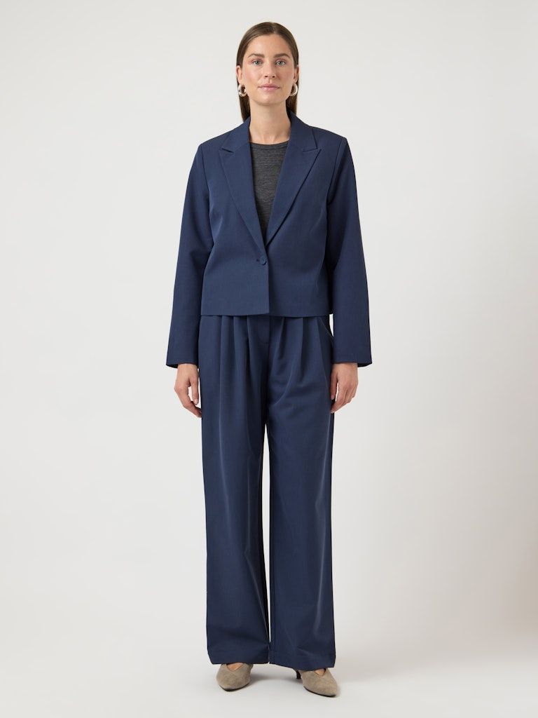 Der elegante Reverskragen und die Knopfleiste setzen einen stilvollen Akzent, während die verkürzte Passform für eine moderne, figurbetonte Silhouette sorgt – ideal für Office, Events oder stilvolle Freizeitlooks.