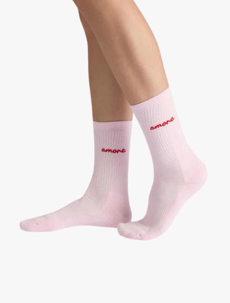 Sag Amore zu jedem Moment – dieser Socken ist eine Hommage an die kleinen Gesten mit großer Wirkung. Das zarte Rosa kombiniert mit dem roten amore Schriftzug bringt subtile Romantik und modernen Style in Einklang. Teil unserer Colorful Statement Kollektion – für alle, die mit Liebe durchs Leben gehen. Wie immer: weiche Baumwolle, verstärkte Sohle, keine störenden Nähte. Produziert in Portugal – langlebig, fair, hochwertig.