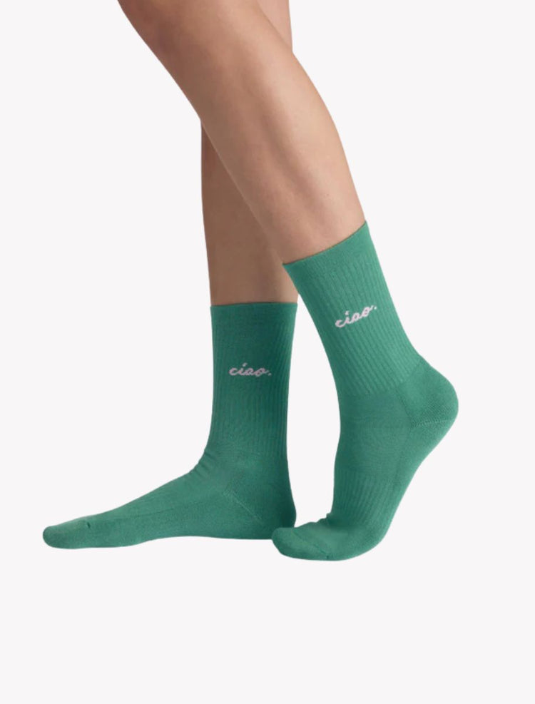 Sag Ciao zum Einheitsgrau – dieser Socken bringt bold energy in deinen Alltag. Mit seinem satten Smaragdgrün und dem rosa ciao Schriftzug ist er Teil unserer Colorful Statement Kollektion – gemacht für alle, die mit Stil Haltung zeigen. Das klare Design trifft auf maximalen Tragekomfort: keine störenden Nähte, verstärkte Sohle, optimaler Sitz. Produziert in Portugal mit viel Liebe zum Detail und Fokus auf Langlebigkeit.