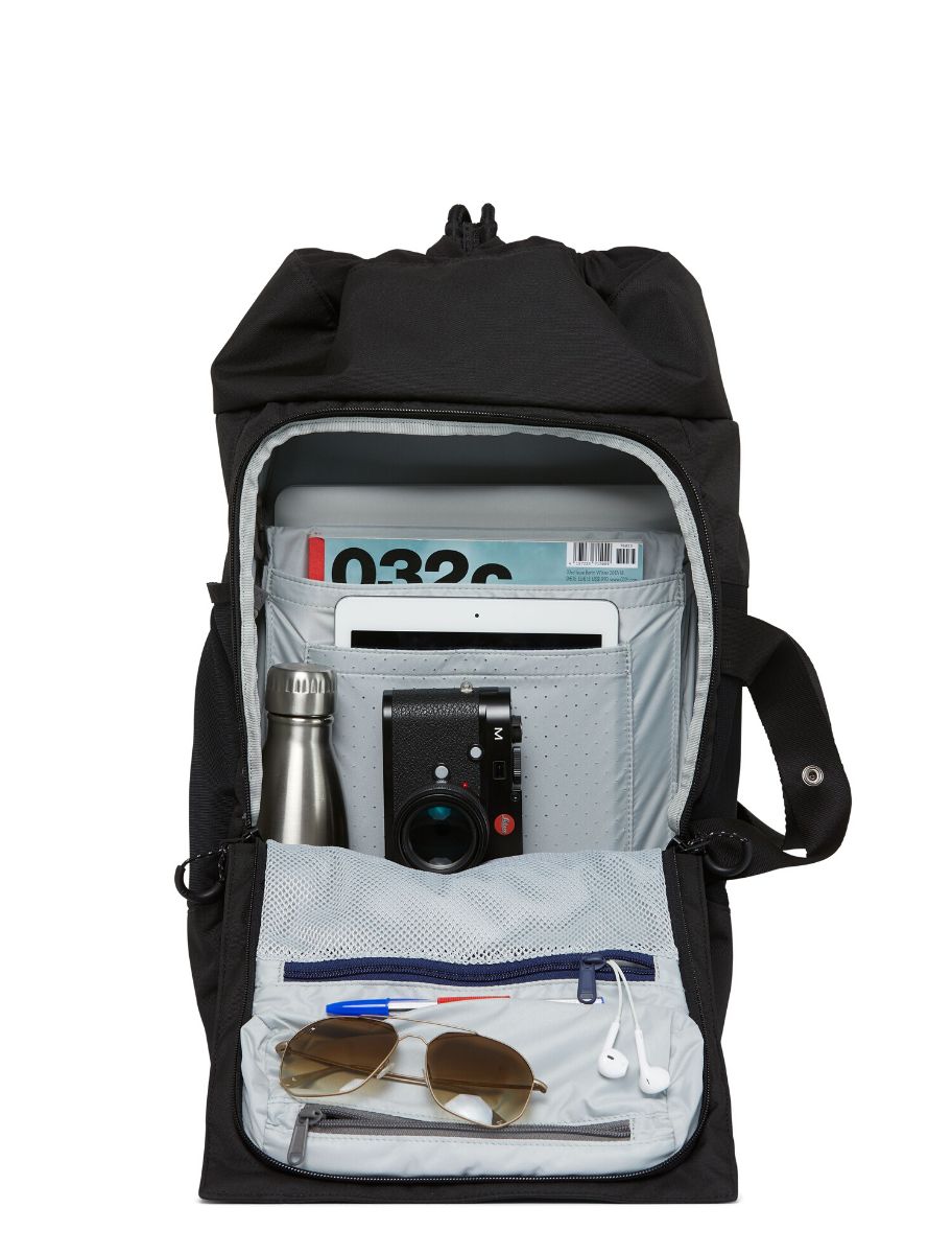 Blok Medium. A versatile travel companion in carry-on format. Creates space for travel gear on your next trip. Wearable as a backpack, carry-on, or messenger bag. It has the right compartment for everything: documents, sunglasses, pens. Blok Medium combines clean design with full functionality.