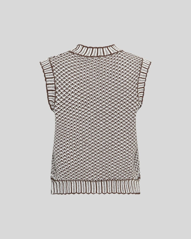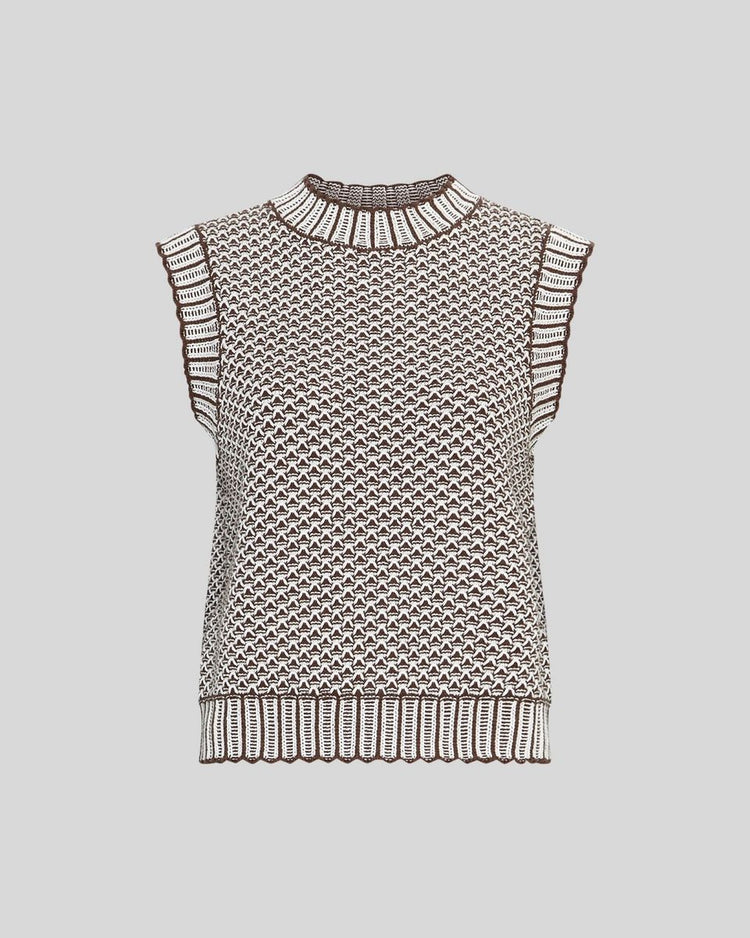 Die Pilla Vest besticht durch ihr zweifarbiges Strickmuster und kontrastierende Rippkanten. Ob solo getragen für einen modernen Look oder klassisch über T-Shirt und Hemd gestylt – diese Strickweste ist ein wandelbares Essential für jede Garderobe.
