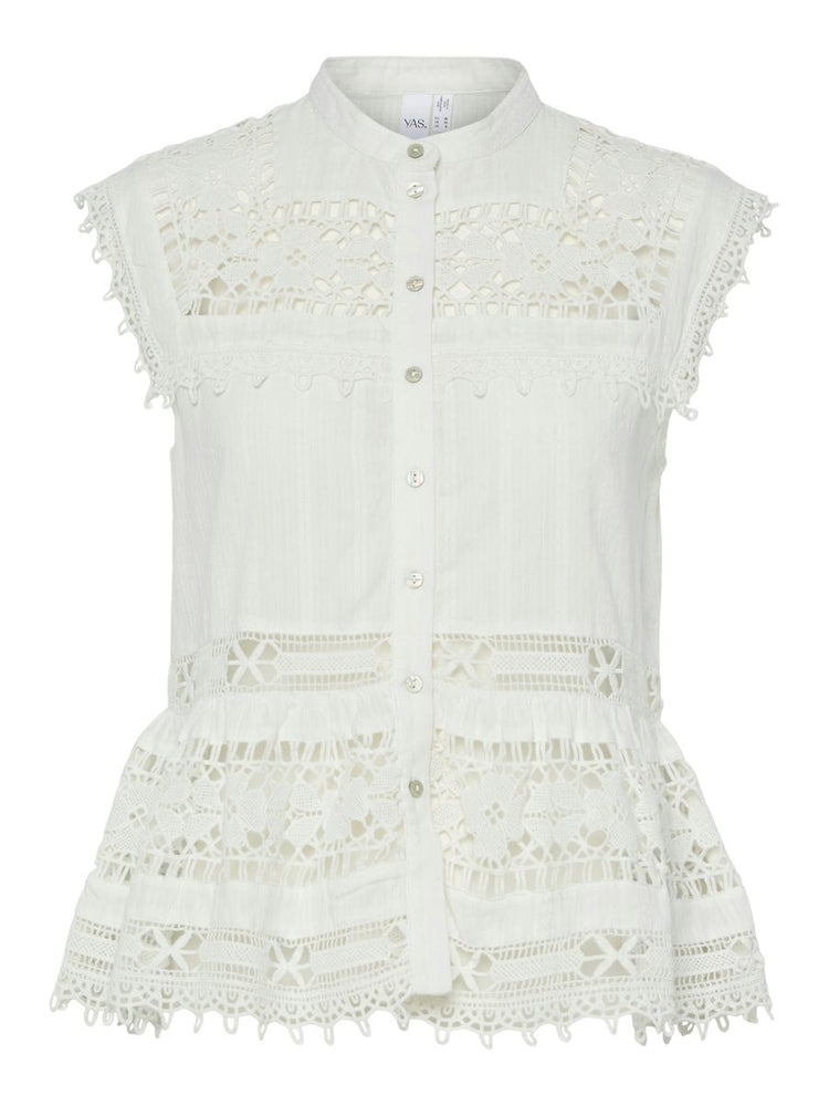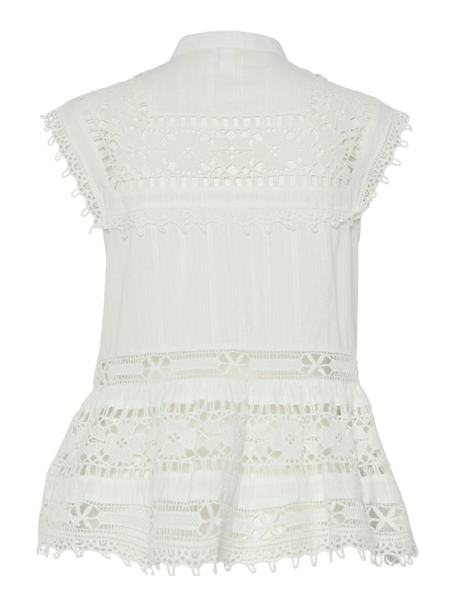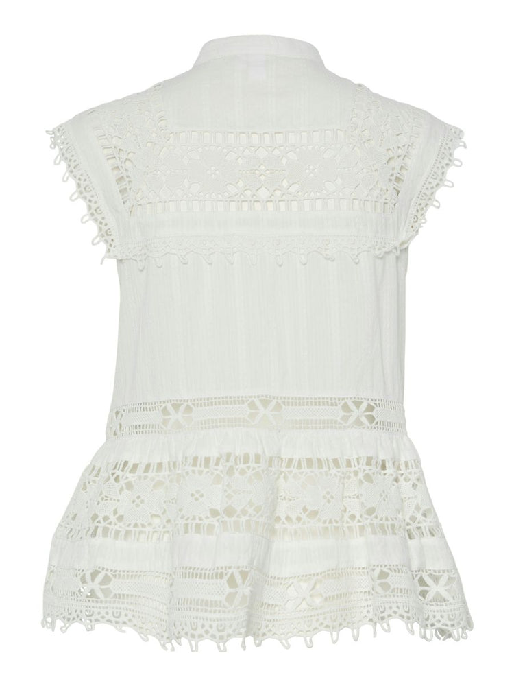 Diese ärmellose Bluse mit Mandarin-Kragen bringt Leichtigkeit und Eleganz in deinen Look. Die feinen Spitzendetails sorgen für einen femininen Akzent, während die Knopfleiste einen klassischen Touch verleiht. Der normal geschnittene Fit macht sie vielseitig kombinierbar — perfekt für lässige Sommer-Outfits oder schick gestylt fürs Büro.