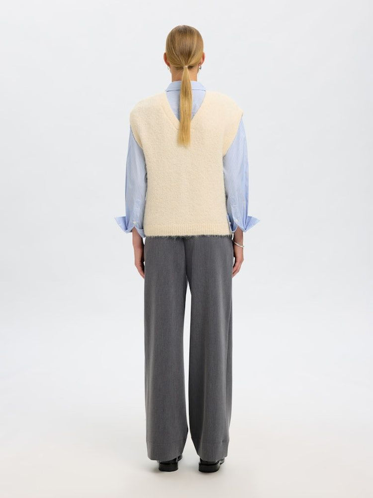 Diese Strickweste mit V-Ausschnitt vereint Schlichtheit und Eleganz. Hergestellt aus einem hochwertigen Alpaka-Woll-Mix, überzeugt sie durch ihre weiche Haptik und den angenehmen Tragekomfort. Der V-Ausschnitt auf Vorder- und Rückseite, die geknöpfte Vorderseite sowie die gerippten Säume verleihen der Weste einen klassischen Look, während die relaxed Fit-Passform für lässige Eleganz sorgt. Zertifizierte Alpaka-Wolle garantiert höchste Qualität und Nachhaltigkeit – ideal kombinierbar mit gestreiften Blusen und Lederhosen für ein stilvolles Outfit.