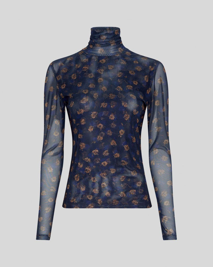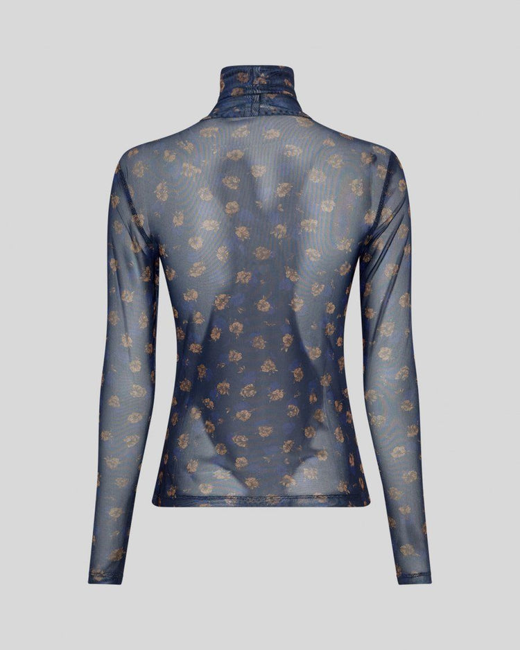 Das MSCH Ginie Illenora Top AOP ist eine langärmelige Mesh-Bluse mit hohem Kragen und femininer Allover-Blumenoptik. Der leicht transparente Stoff sorgt für einen modernen und eleganten Look, ideal zum Layern. Trage es unter einem Blazer oder Strickpullover für einen stilvollen Auftritt oder kombiniere es solo mit Jeans oder Rock für ein feminines Outfit.
