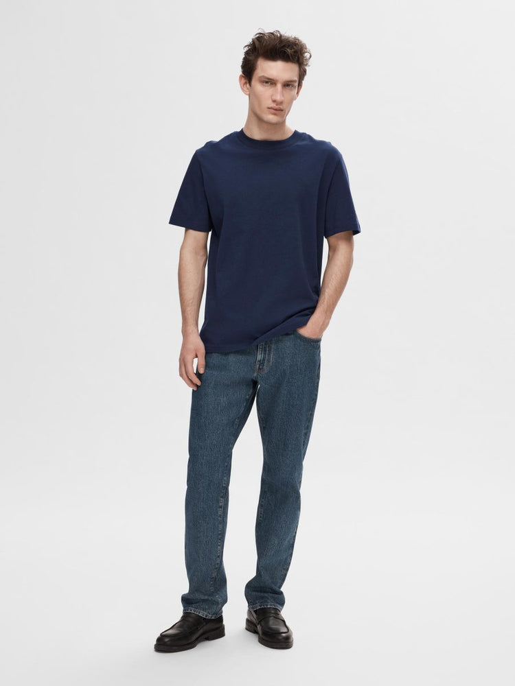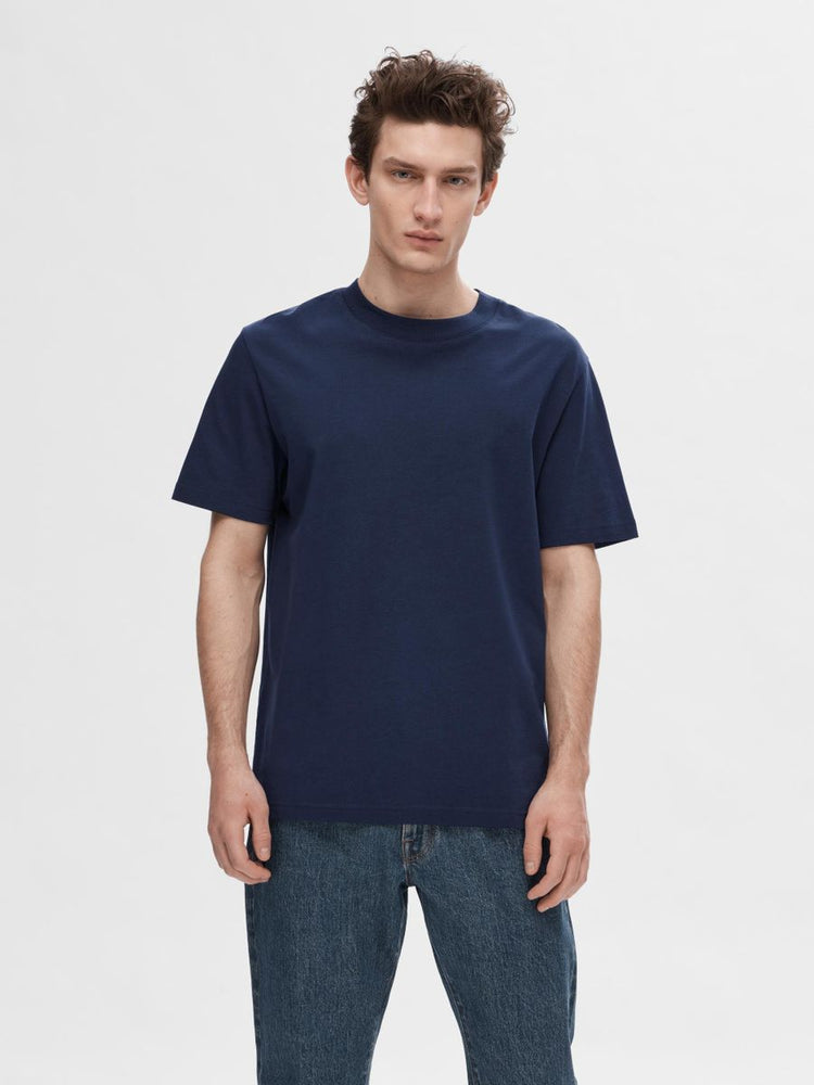 A cotton T-shirt belongs in every closet. This one is made from soft organic cotton jersey, making it not only comfortable but also more sustainable. A ribbed crew neck sets this T-shirt apart from your average T-shirt and gives it a sophisticated look. Pair it with dark blue jeans and classic white sneakers. - Ribbed crew neck - Short sleeves - Stitched hems - Regular fit