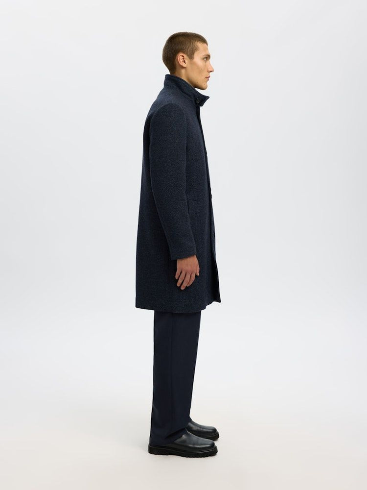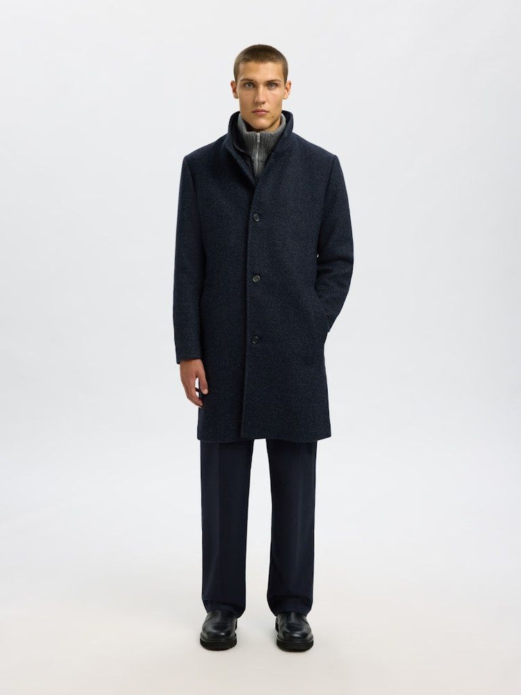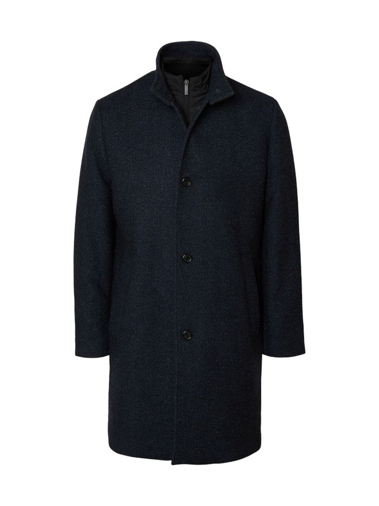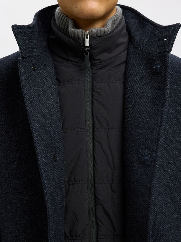 Der hohe Kragen schützt vor Wind und Kälte, während das gesteppte Innenfutter für zusätzlichen Komfort und angenehme Wärme sorgt. Mit seinem Regular Fit lässt sich der Mantel bequem über Büro-Outfits tragen und bietet zugleich eine elegante Silhouette.