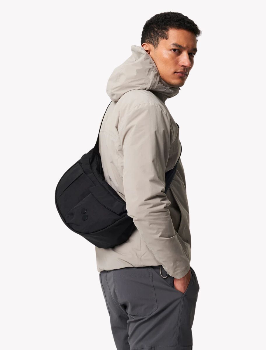 Krumm Medium. Tragbar als Crossbody Bag. So hast du immer die Hände frei. Krumm bietet viel Platz mit einem großen Haupt-, Rücken- und diversen Netz- und Reißverschlussfächern sowie einem versteckten AirPods-Fach. Volumen: 7,5 l. Alles zur Hand, wenn du unterwegs bist. Erhältlich in zwei Größen.